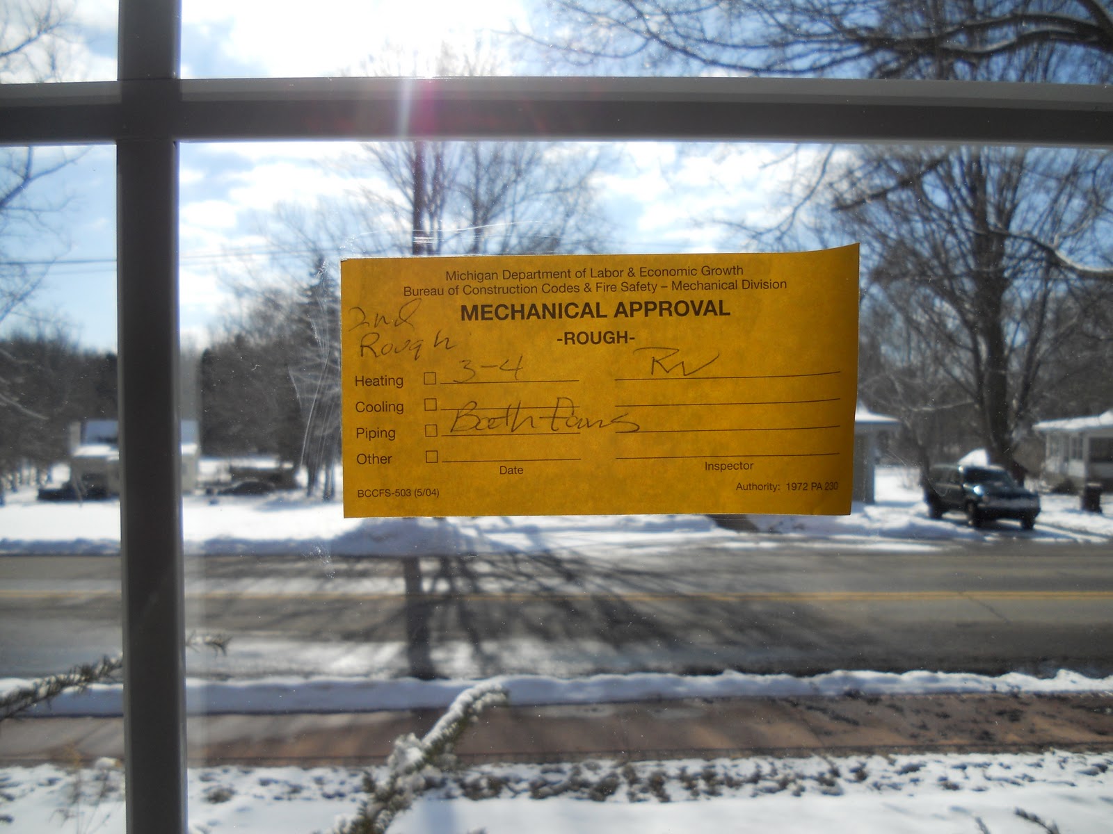 Once the windows were in we started putting in the roof vents. It isn't particularly showy though it needed to be finished and the weather was perfect for it. So the remainder of the morning was spent on the roof cutting out new vent holes, repairing areas where old ones were, and taking down the chimney stack. At about this point Doug decided to test the water pressure in the lines, and discovered that there were a few places where the ends weren't capped. At least it was relatively warm for the shower though.